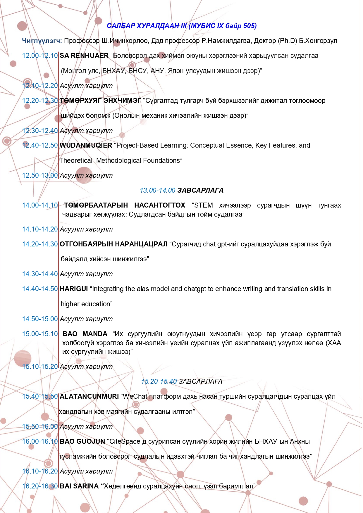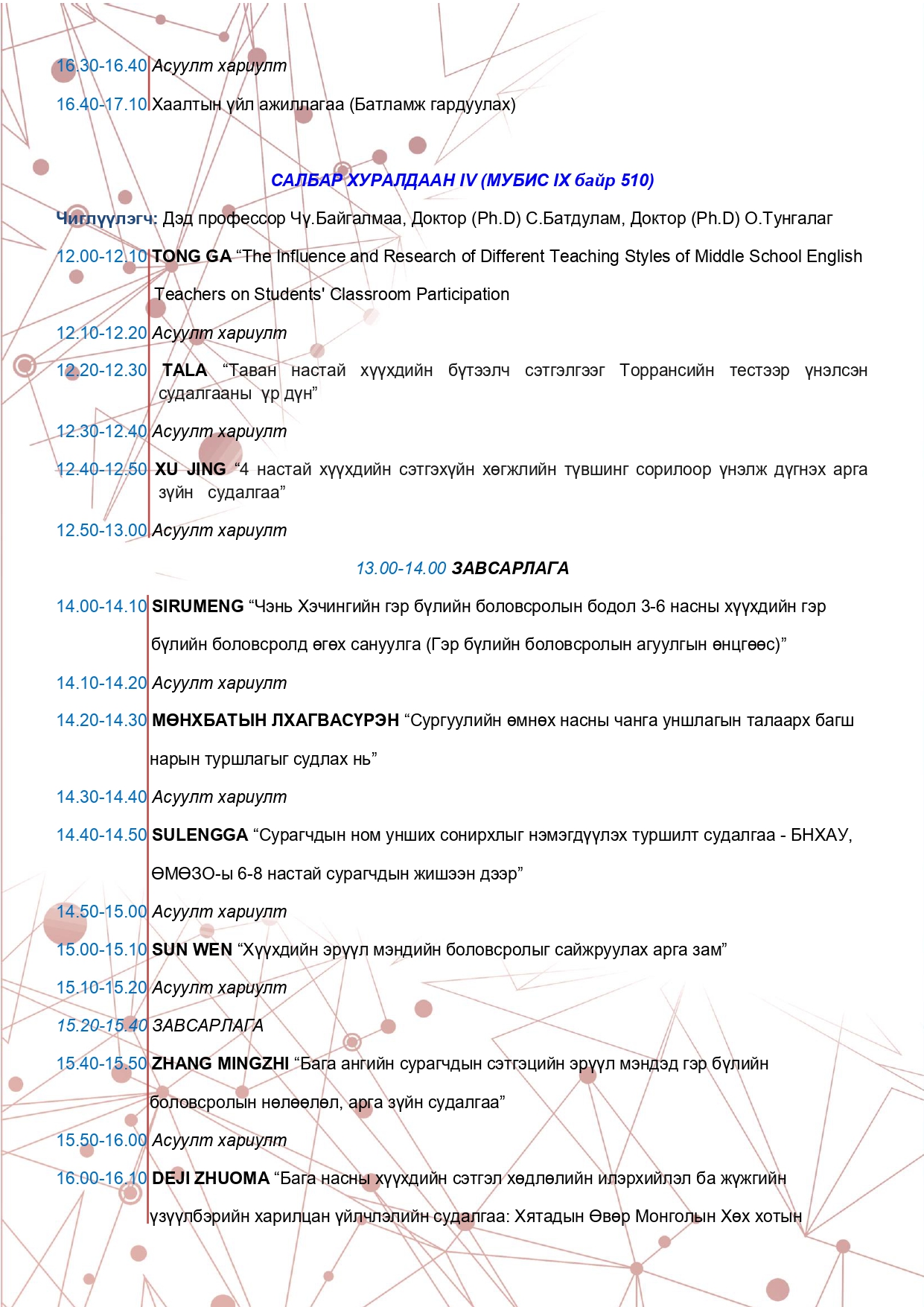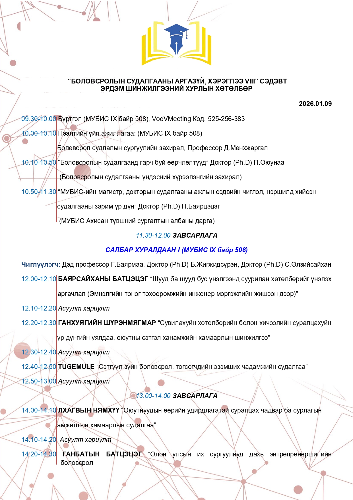 "Боловсролын судалгаа аргазүй, хэрэглээ VIII" сэдэвт эрдэм шинжилгээний хурлын хөтөлбөр
