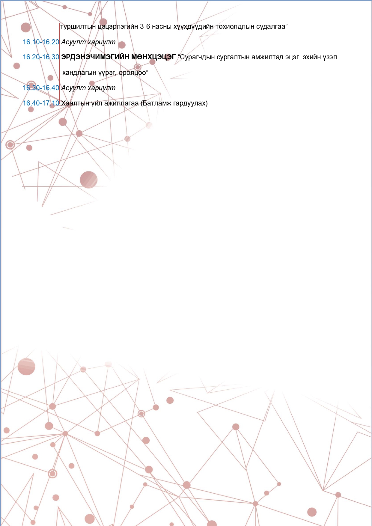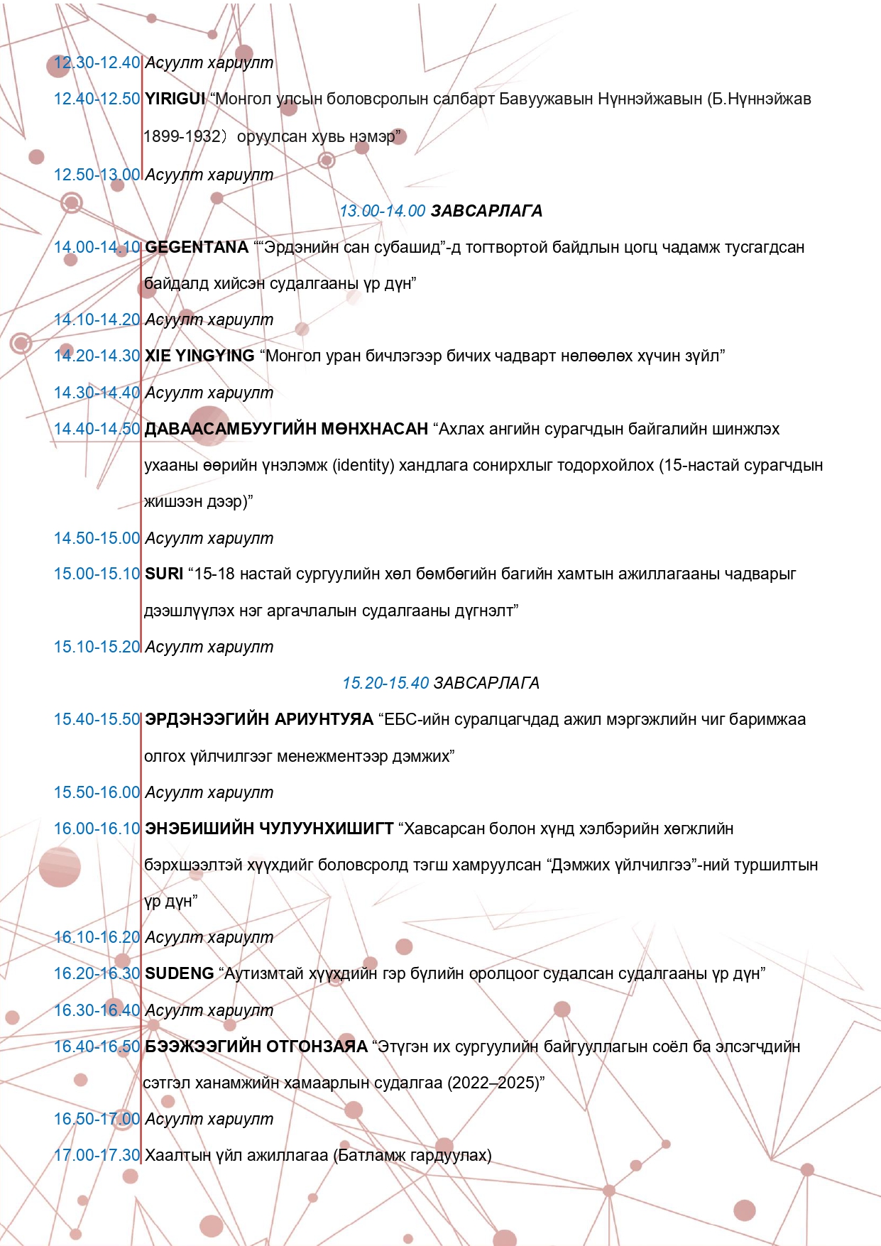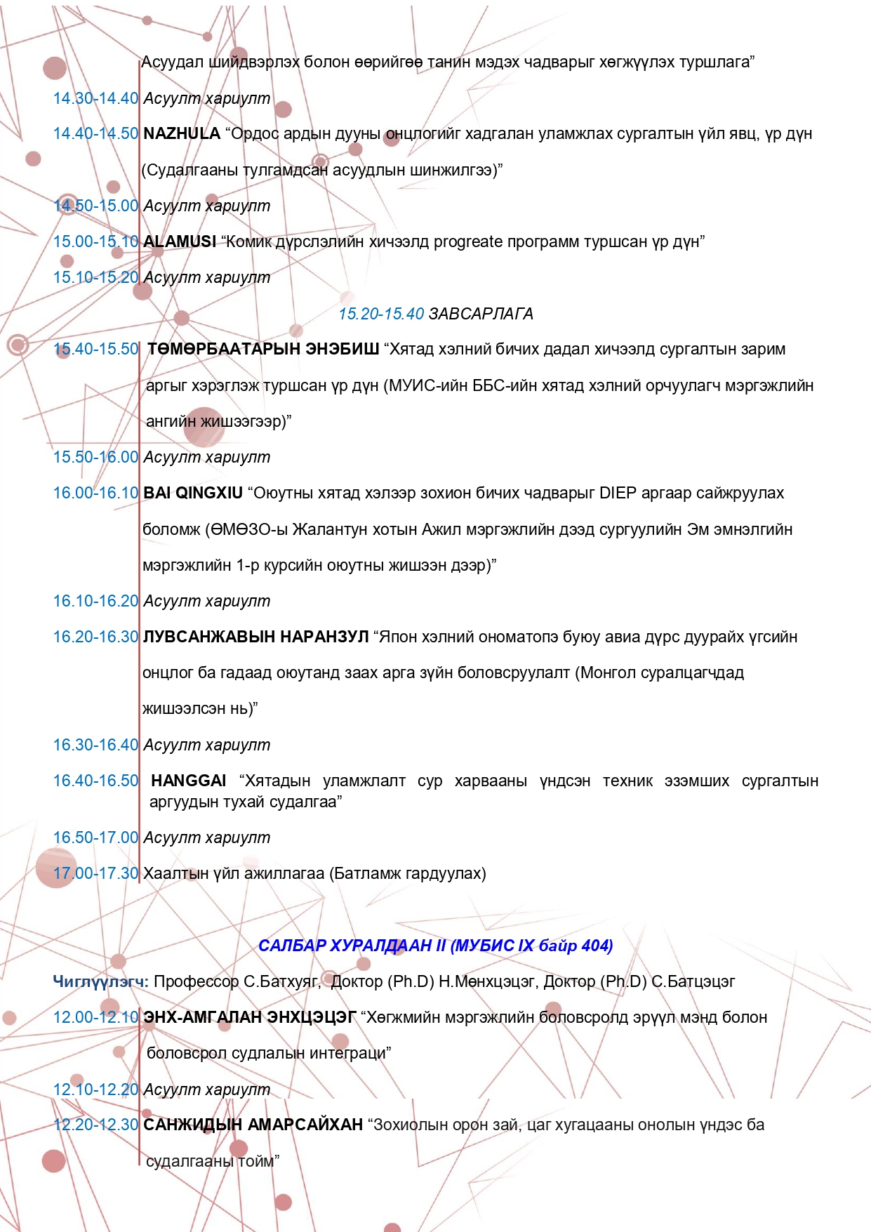 "Боловсролын судалгаа аргазүй, хэрэглээ VIII" сэдэвт эрдэм шинжилгээний хурлын хөтөлбөр