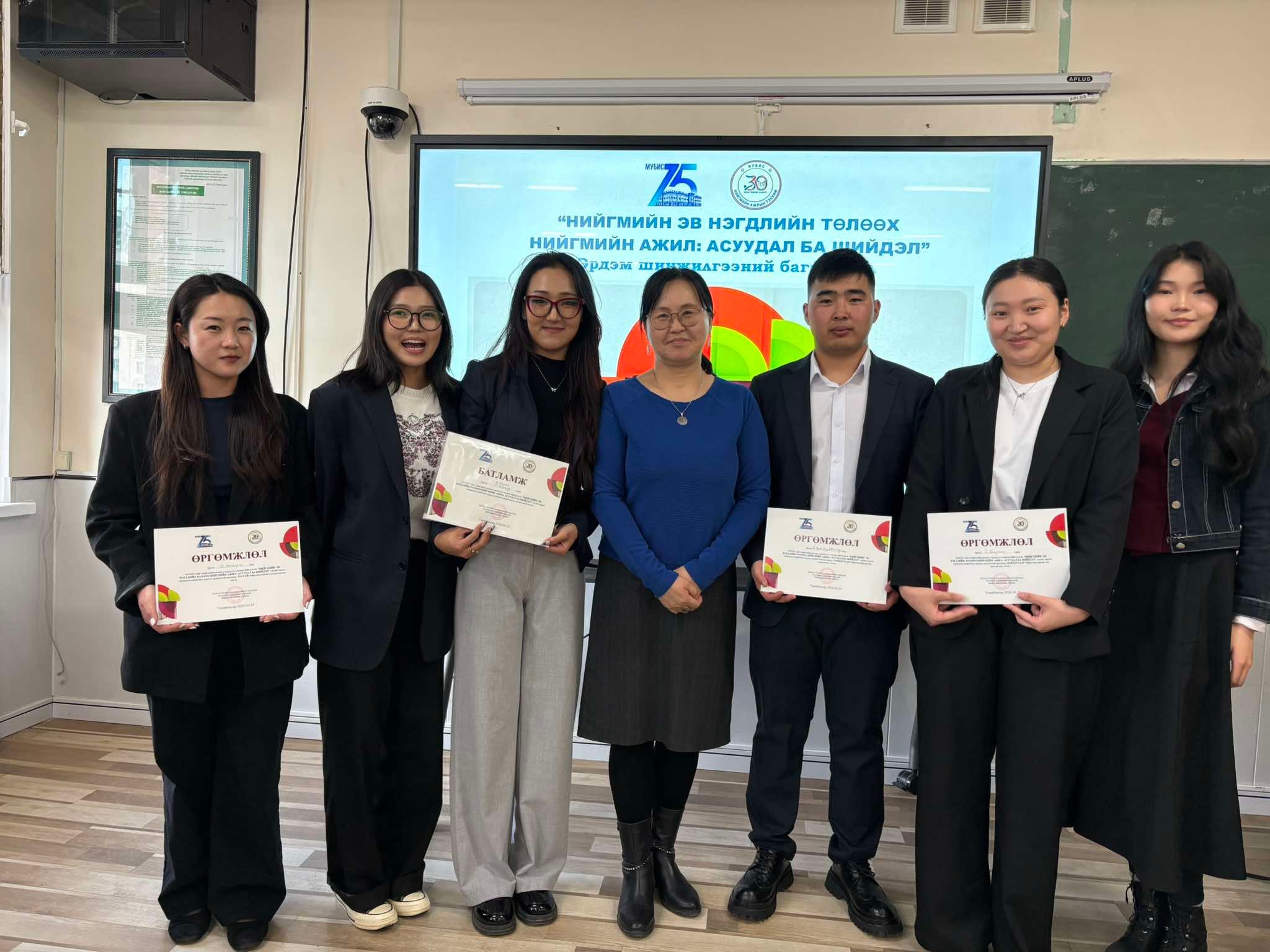 “НИЙГМИЙН ЭВ НЭГДЛИЙН ТӨЛӨӨХ НИЙГМИЙН АЖИЛ: АСУУДАЛ БА ШИЙДЭЛ” оюутны эрдэм шинжилгээний бага хурал зохион байгуулагдлаа.